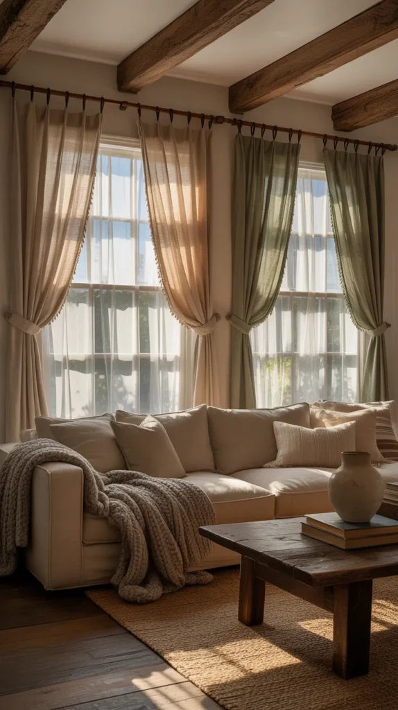 Layered curtains with sheers are a simple and cost-effective way to transform your living room. Focus on mixing affordable fabrics with durable materials to get the best value. Buying neutral curtains allows you to reuse them with different decor styles over time. Look for sales, bundle deals, and ready-made sets to save money.