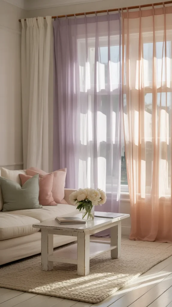 7. Soft Pastel Sheers with White Curtains