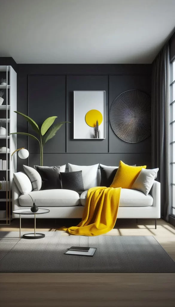 - Choose light-colored furniture to contrast with the deep gray, such as white, light gray, or cream sofas.