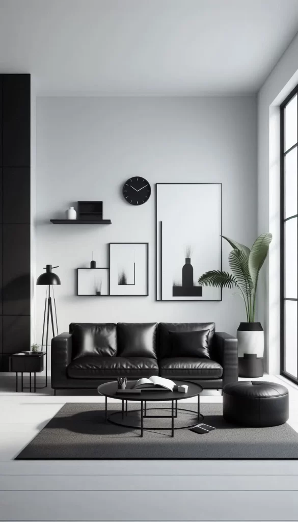 - Use white furniture as a base and add black elements like a statement chair, coffee table, or rug.