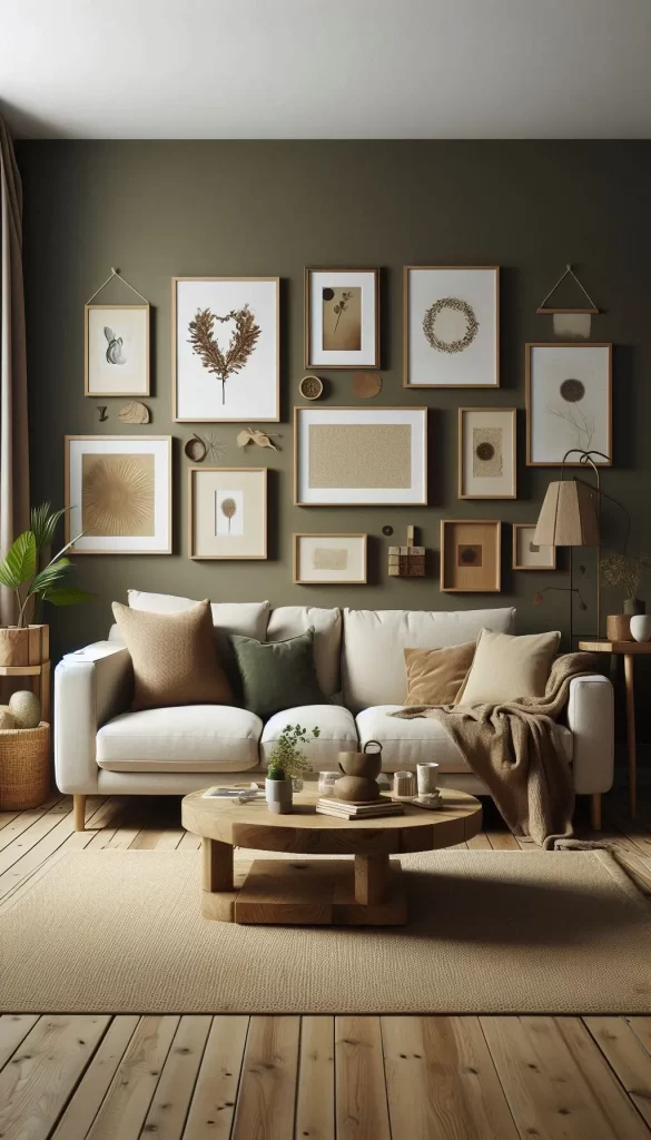 Olive green adds a grounded, natural feel to your living room. Its earthy tones evoke a sense of calm while maintaining a modern touch, making it perfect for a cozy, inviting space.