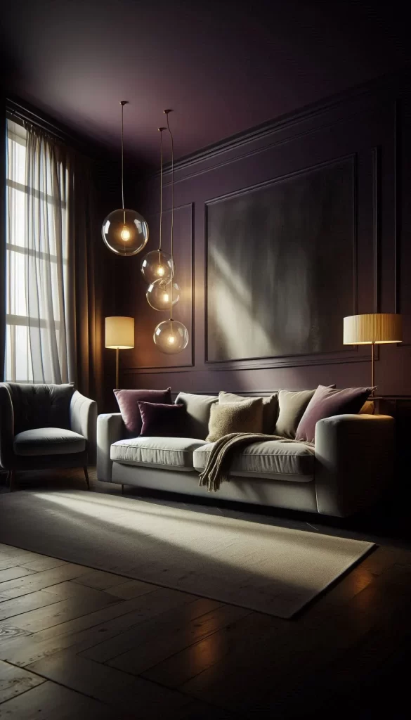 Moody plum is a rich, deep color that adds mystery and depth to your living room. It’s perfect for creating a cozy and intimate atmosphere with a luxurious edge.