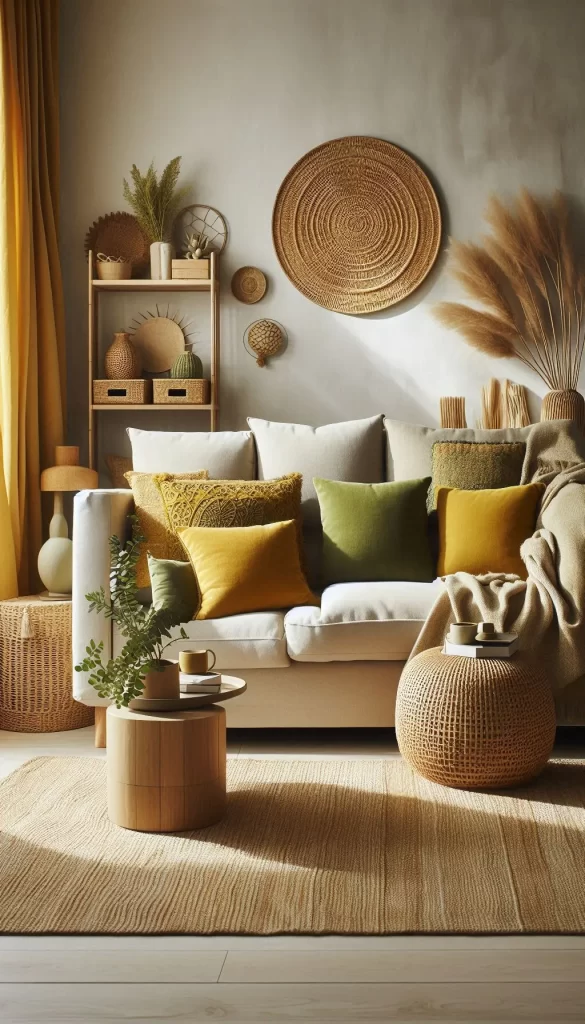 - Add natural textures like wicker, jute rugs, or wooden elements to enhance the earthy vibe.