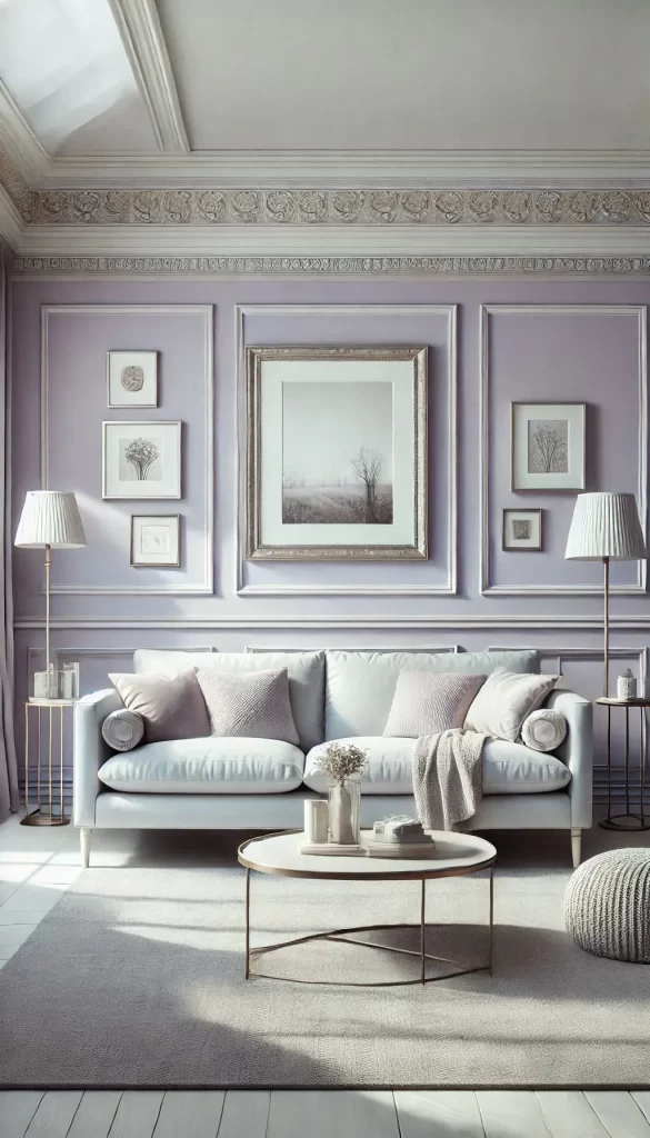 Soft lavender is a calming, elegant color that introduces a touch of luxury and tranquility into your living room decor.