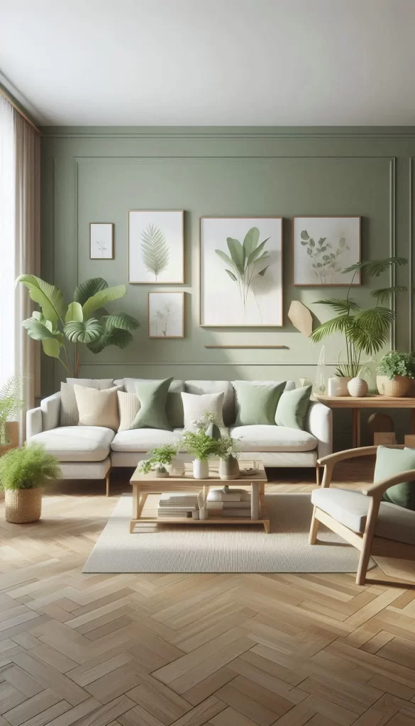 Sage green is a serene, calming color that creates a peaceful atmosphere in any living room. This soft shade of green pairs beautifully with neutrals and natural textures, offering a refreshing and organic feel.