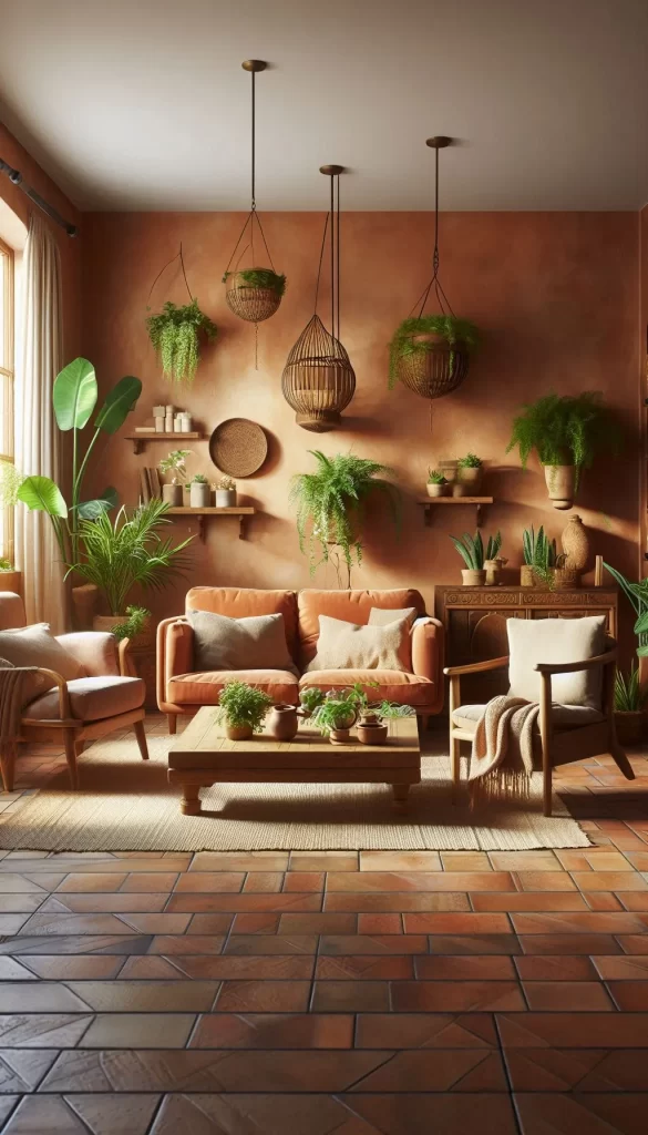 Terracotta is a rich, earthy color that brings warmth and character to any living room. This rustic shade works wonders when combined with a variety of textures and natural elements.