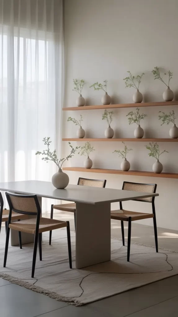 A minimalist dining room creates a calm, organized, and stylish space perfect for meals, gatherings, and relaxation. Minimalist wall decor emphasizes clean lines, neutral colors, and subtle details, transforming your dining area without clutter. From simple artwork to creative shelving, these ideas will help you achieve a fresh, modern look while keeping your walls beautiful and functional. Here are 15 minimalist dining room wall decor ideas to inspire your next home upgrade.