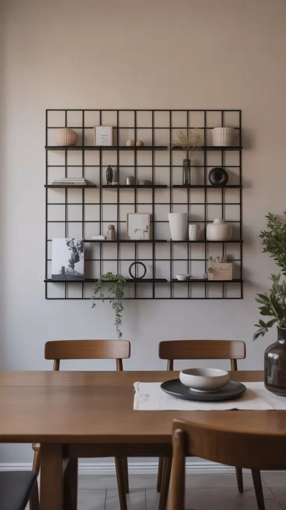 A wall grid organizer combines style and function. Use it to hang notes, small plants, or photos in a clean, organized way. Choose black or metallic grids for a modern, minimalist look. It keeps decor versatile and clutter-free.