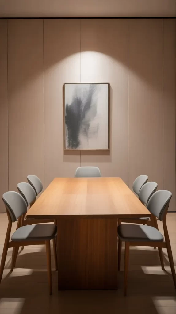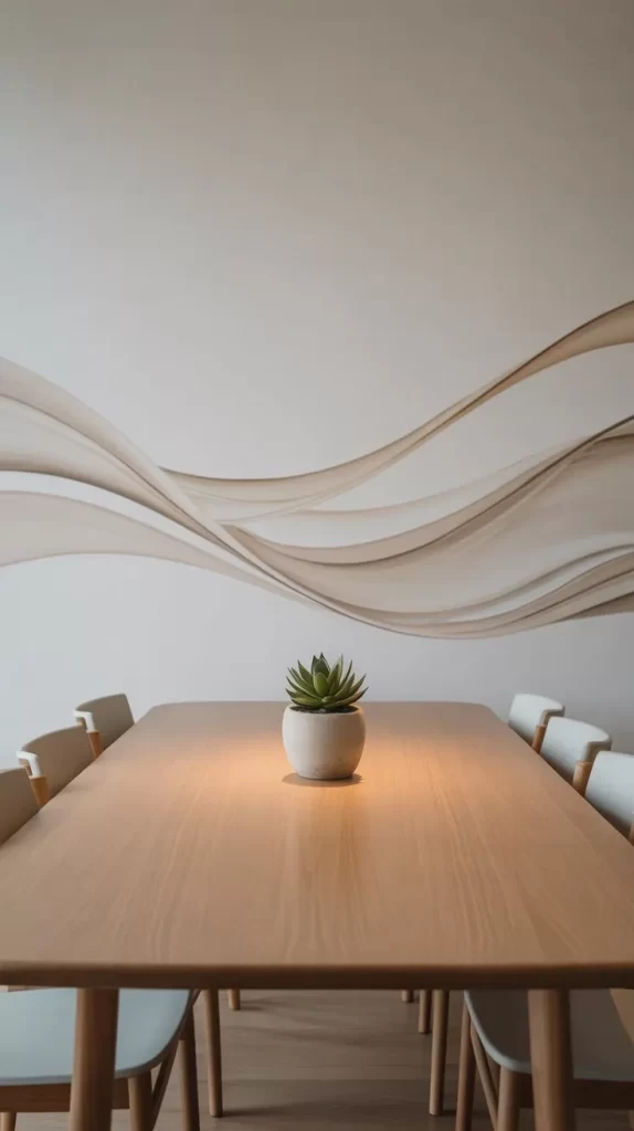 Textured wall panels add depth without adding clutter. Choose neutral materials like wood, plaster, or fabric in subtle patterns. Place panels behind the dining table to create a focal point that remains understated and modern.