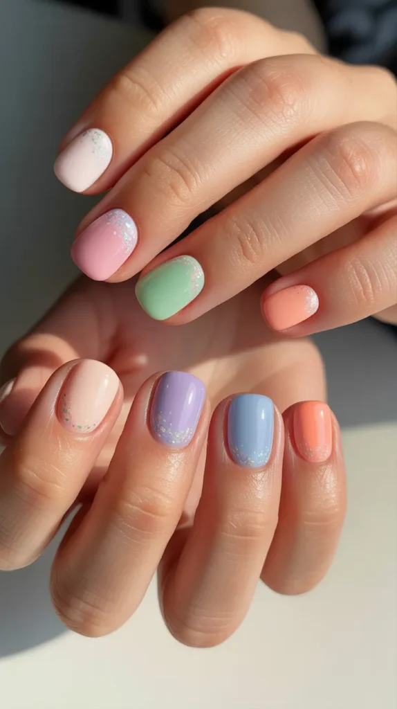 This design is great for spring and Easter. It is also a cost-effective choice because pastel nail polish sets are often sold in affordable bundles. You can find budget-friendly glitter nail kits at stores like Ulta Beauty, Sally Beauty, or Target, both online and offline in the USA. Checking seasonal sales can help you save money on your nail art investment.