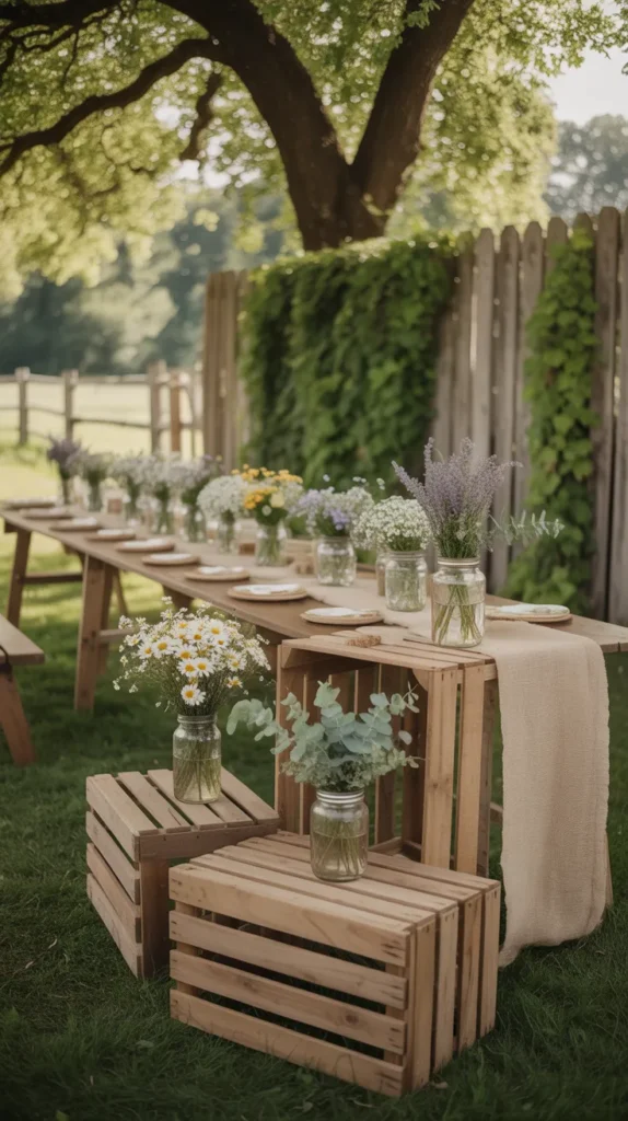 This outdoor baby shower idea is budget-friendly because many decorations can be DIY. Reusing wood boxes and simple floral arrangements helps you save money. It is a cost-effective way to achieve a stylish setup without overspending.