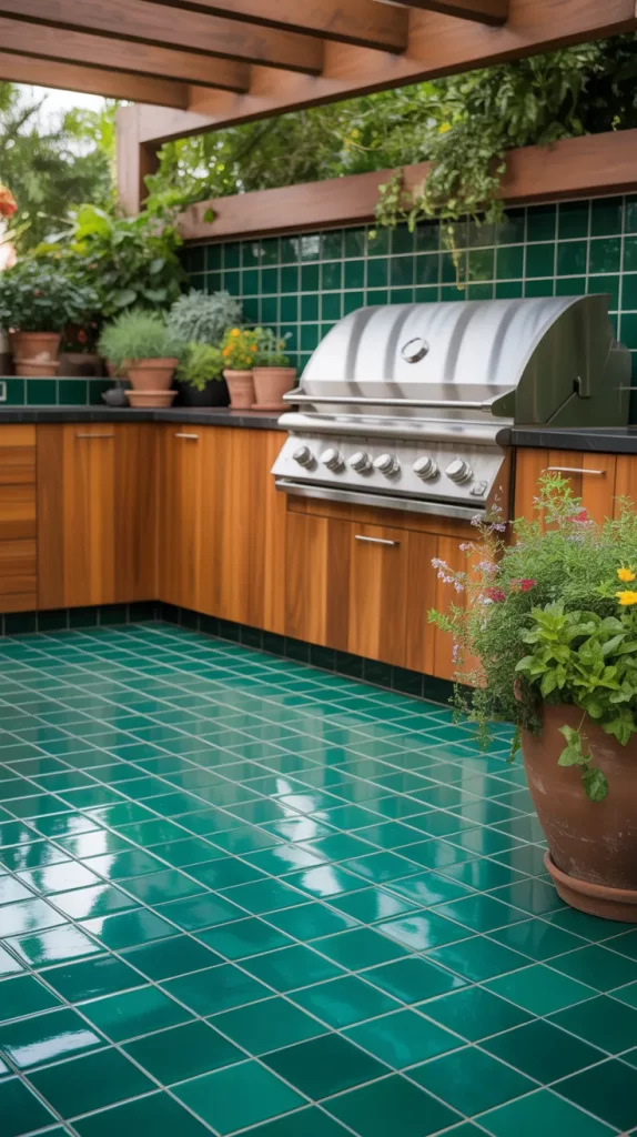 14. Green Tile Flooring for Natural Balance
