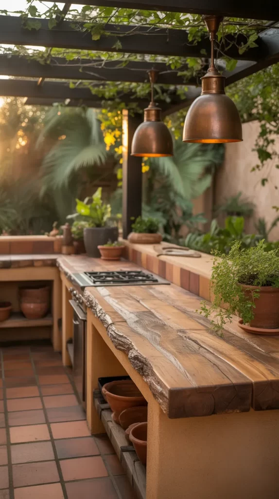 Coral works especially well in outdoor kitchens surrounded by greenery, as the contrast feels natural and lively. It’s a subtle yet eye-catching way to add color.