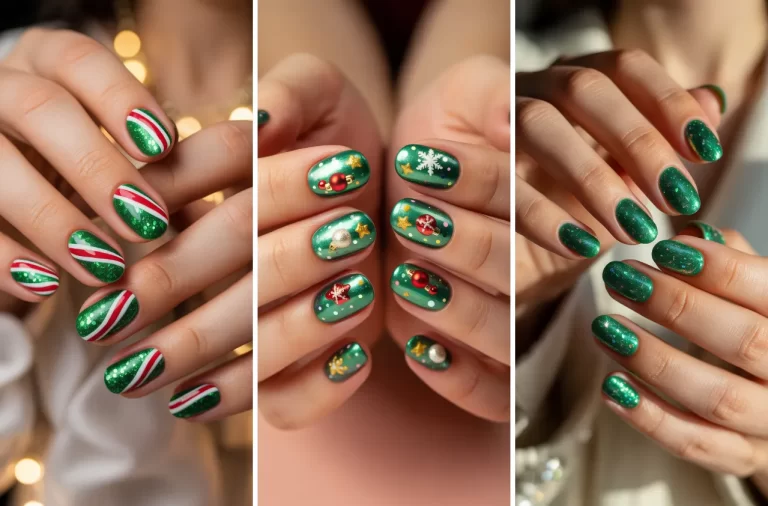 15 Glittery Green Christmas Nails for Sparkly Holiday Vibes