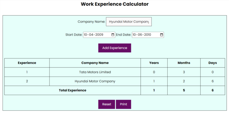 Work Experience Calculator How to Use the Work Experience Calculator This tool allows you to calculate and track your work …