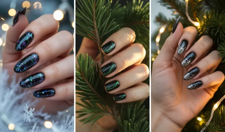15 Sparkly Black Christmas Nails for Winter Celebrations