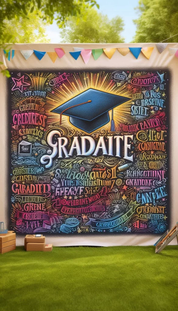 • Use a large chalkboard or black paper to create a chalk art design featuring the graduate’s name, graduation year, and decorative elements like stars, hearts, or banners.