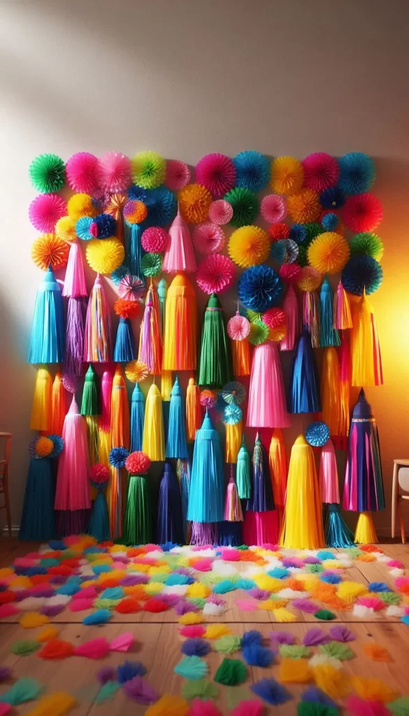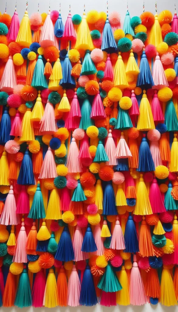 • Attach the tassels to a string or twine and hang them vertically to form a backdrop.