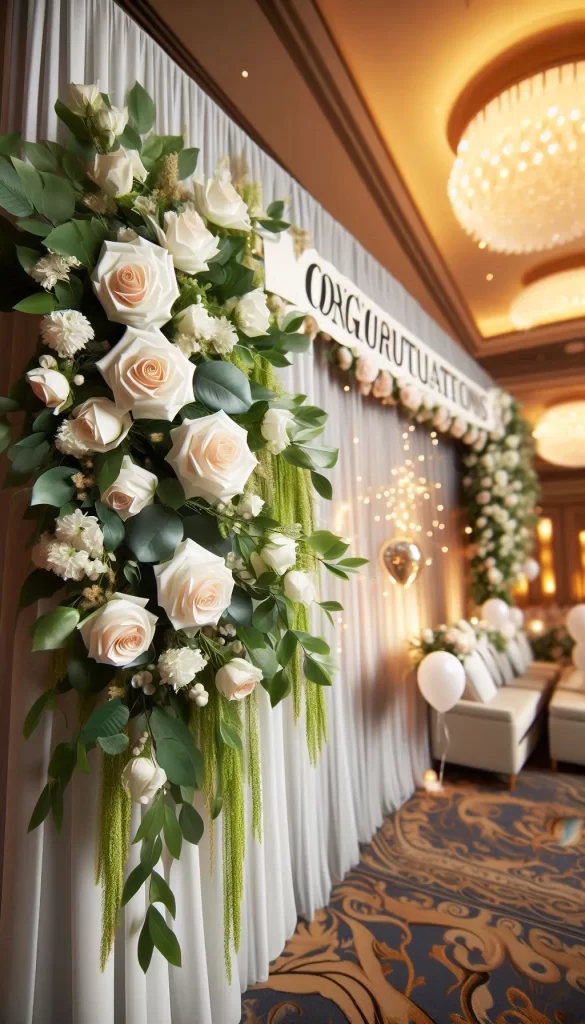 Floral elements can add a fresh, elegant touch to any graduation party backdrop. Whether you prefer real flowers or artificial blooms, they’re a perfect way to enhance the aesthetic of the party.