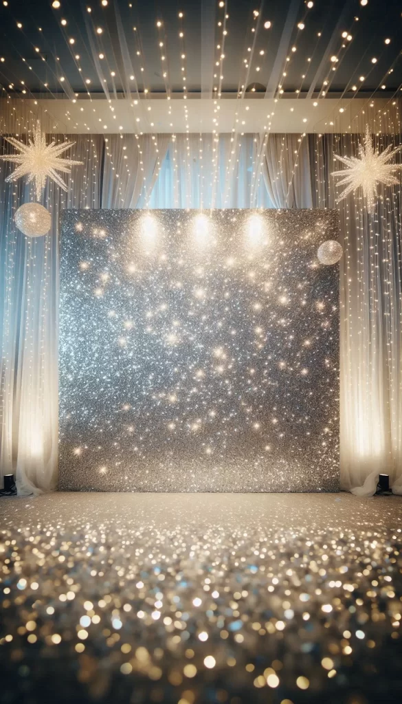 • Add a few metallic confetti or foil decorations around the backdrop for extra sparkle.