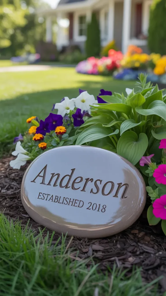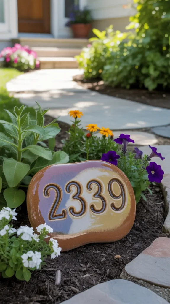 This idea is a smart purchase because it adds a custom touch without expensive landscaping. A well-made ceramic stone is weather-resistant, making it a long-term investment. It is also a budget-friendly way to boost curb appeal while keeping your outdoor decor simple and meaningful.
