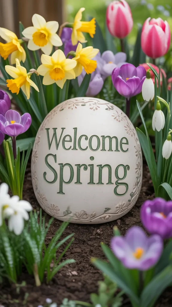 Seasonal ceramic garden stones with custom messages like “Happy Spring” or “Welcome Fall” allow you to rotate decor throughout the year. These stones keep your yard fresh and festive.