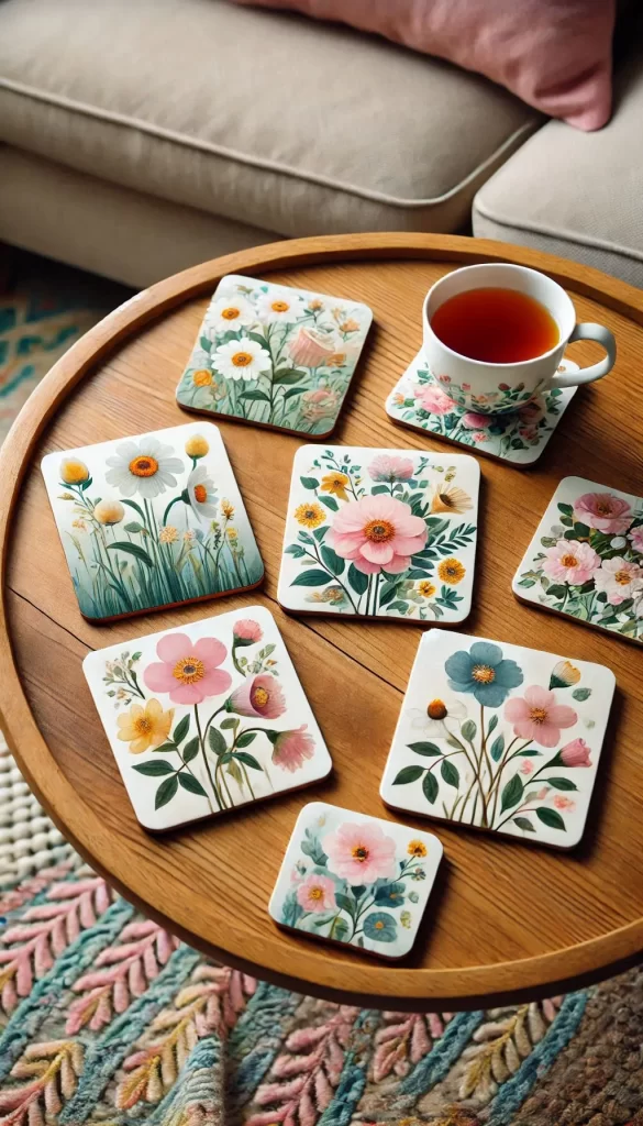 Making your own coasters can be an easy and practical way to bring spring colors to your coffee table or dining table.