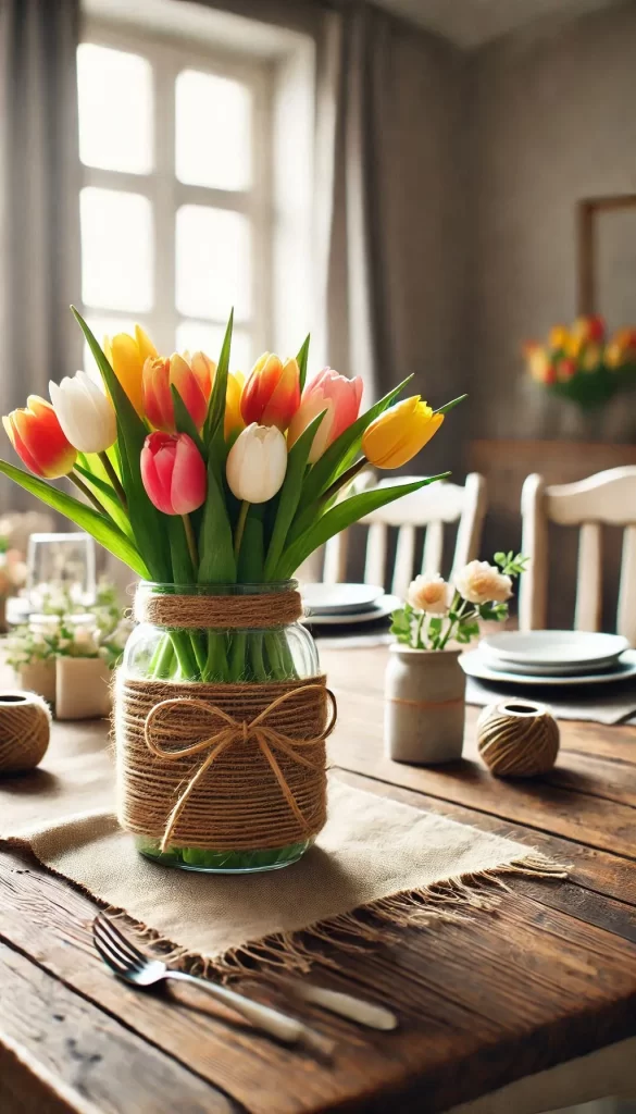 - Add a bouquet of fresh spring flowers like tulips or daisies.