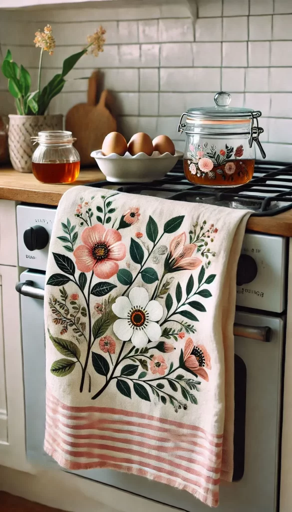 Add a spring touch to your kitchen with handmade tea towels that feature floral prints or bright colors.