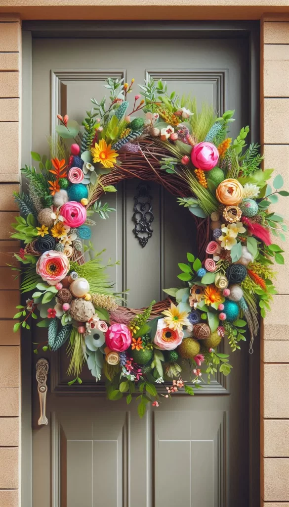 A spring wreath made of fresh flowers or faux greenery can give your home a welcoming touch.