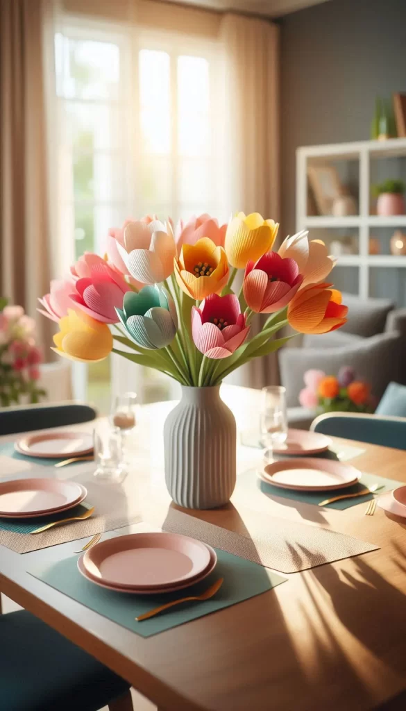 Create a colorful and low-maintenance tulip bouquet from paper for a spring centerpiece.