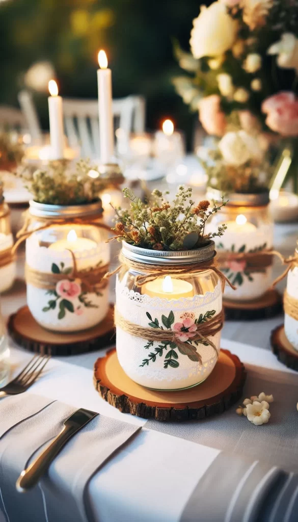 - Decorate with twine, burlap, or lace around the neck of the jar.