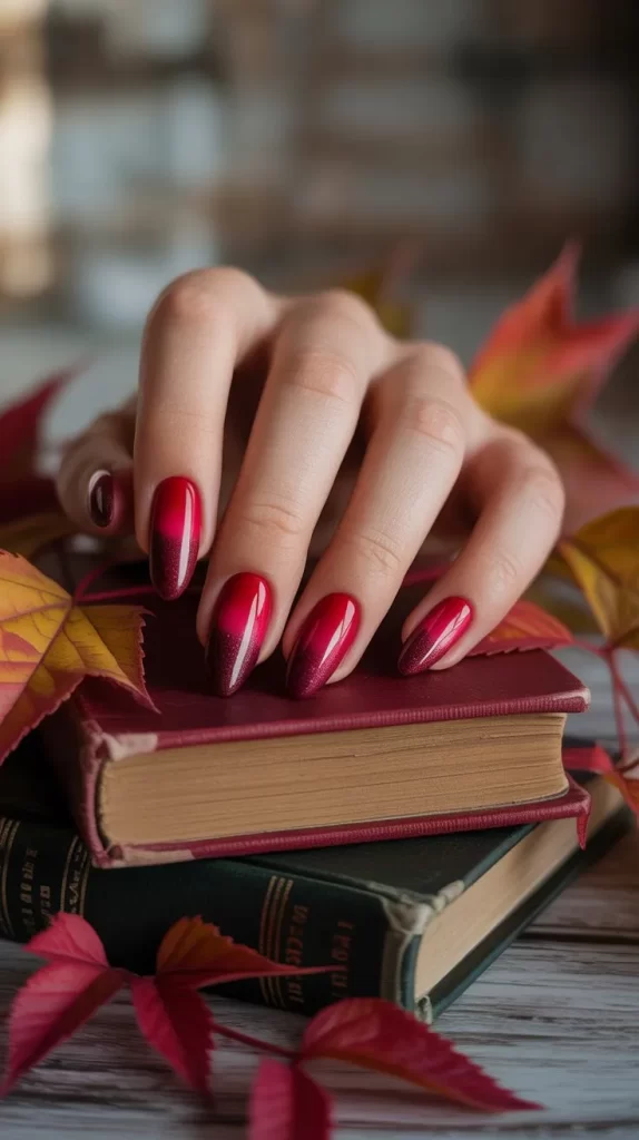 This design is versatile and works with both matte and glossy finishes. Red ombre nails pair beautifully with fall coats, boots, and scarves, making them ideal for the season.