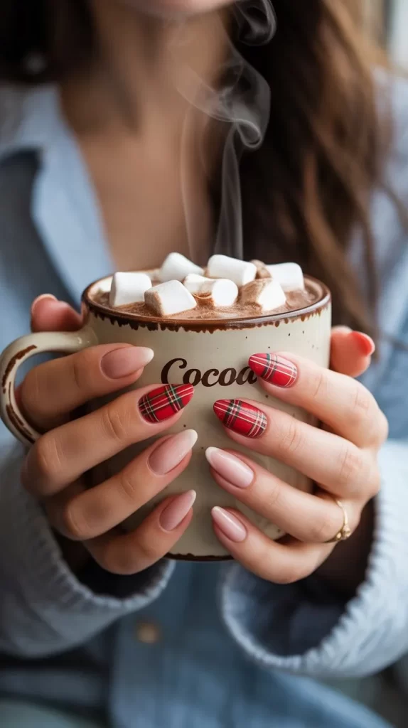 8. Red Plaid Nails