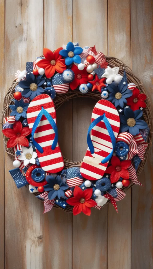 Celebrate summer and patriotism with a wreath made from dollar store flip flops!