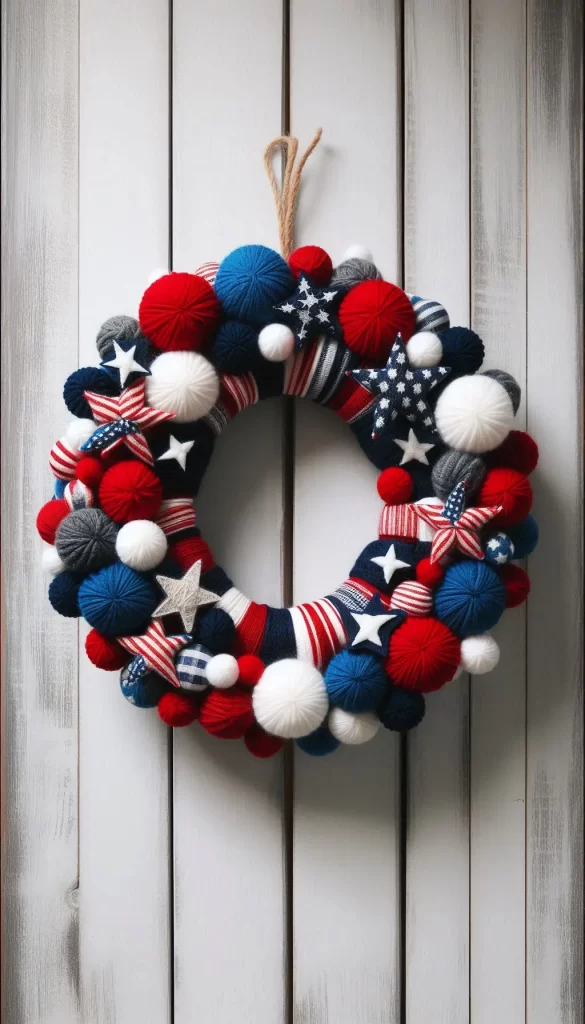 Soft pom-poms in red, white, and blue create a cozy and charming display.