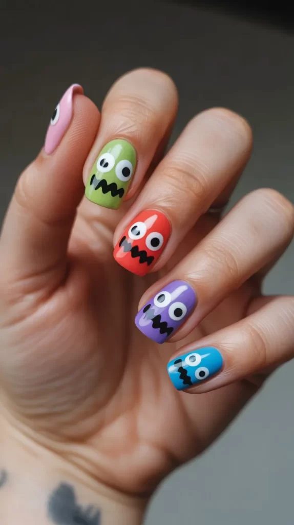 Monster nails are adorable and easy to customize. Short nails make the tiny faces cute and detailed. These are perfect for kids or adults who love a fun, playful Halloween theme. Pair with colorful outfits for a cheerful look.