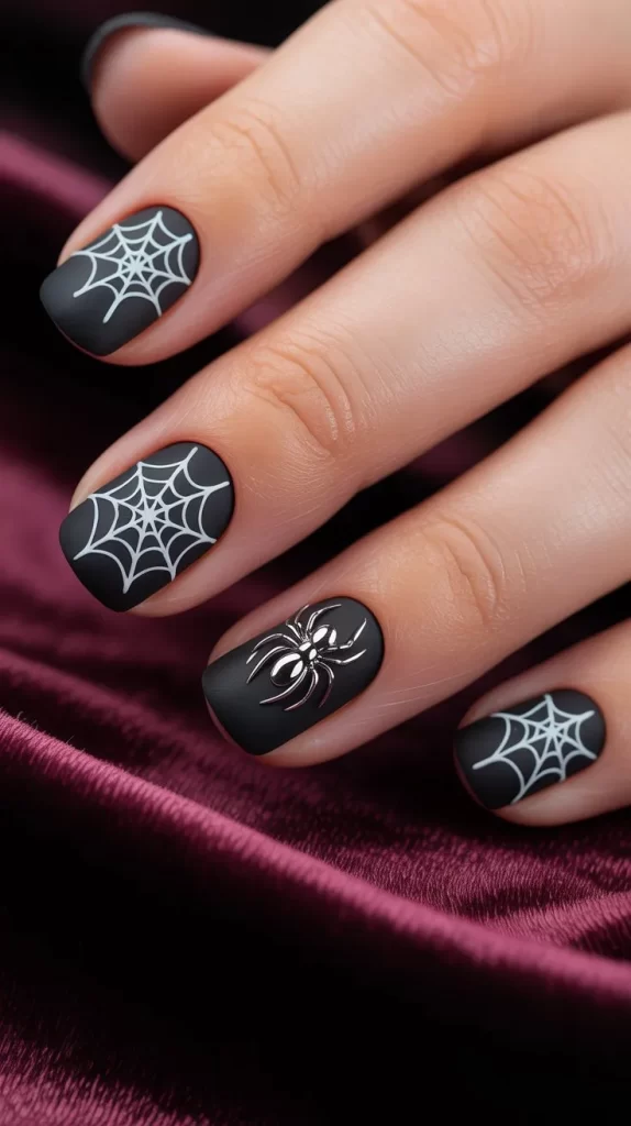 This design is perfect for minimalists who still want a spooky touch. It’s easy to do at home and pairs well with other Halloween outfits. The spider accent can be small but dramatic, creating a fun focal point on your hands.