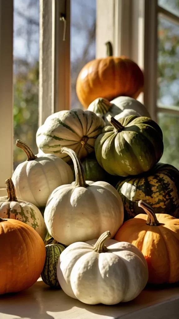 Decorate with mini pumpkins and gourds for compact fall charm.