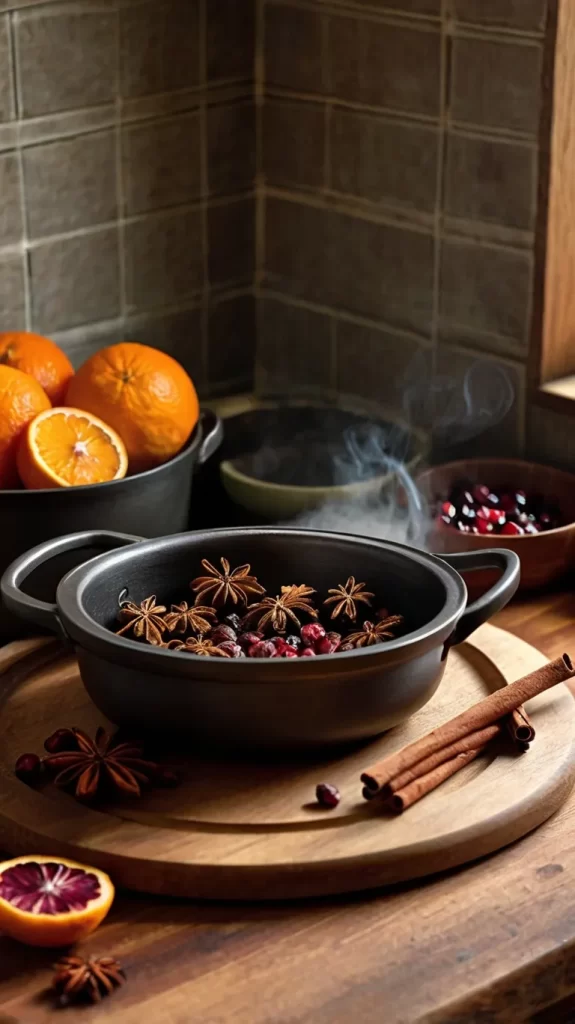 - Display ingredients like cinnamon sticks, orange slices, and cloves in small bowls.