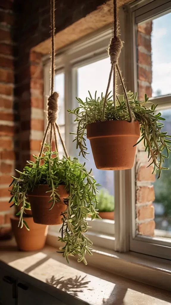 Elevate your fall decor—literally—by creating a suspended herb garden that not only adds a touch of rustic charm but also fills your apartment with the delightful scents of the season. This living decoration is perfect for small kitchens or any sunny window, utilizing vertical space to bring the outdoors in. Think fragrant rosemary, hearty sage, and trailing thyme, all ready for your fall recipes.