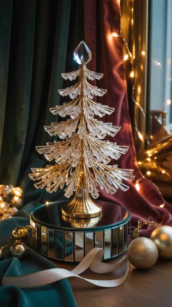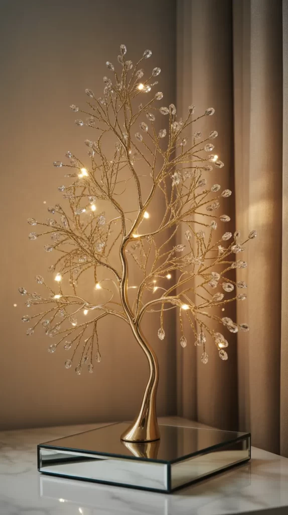 Place this tree on a marble or mirrored base for extra reflection. The mix of gold and crystal feels festive yet timeless, fitting for elegant corners or dining buffets. It’s perfect for those who love classic glamour.