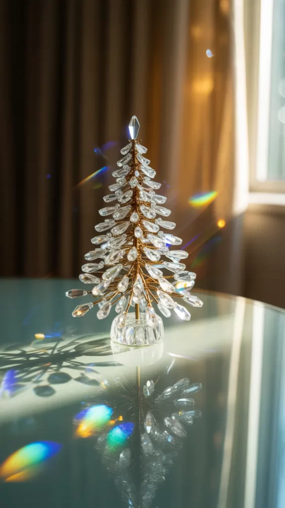 It’s perfect for a formal dining area or a glamorous holiday nook. Add a spotlight or place it near natural sunlight to see the crystals shimmer beautifully. This design brings luxury without needing a full-sized Christmas tree.