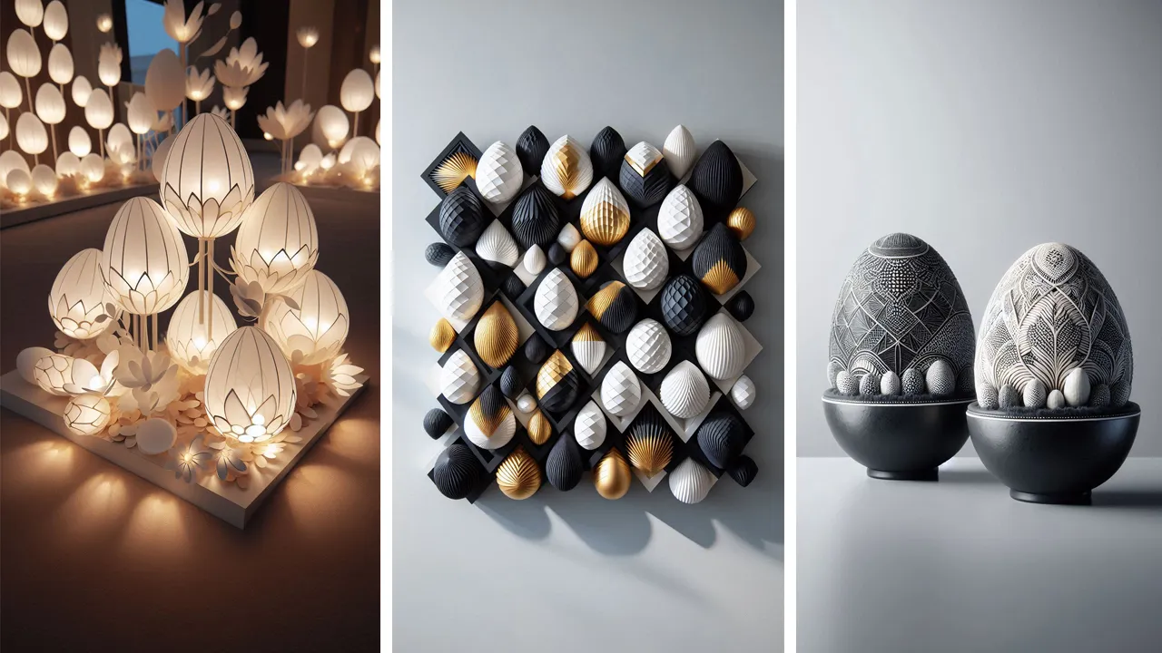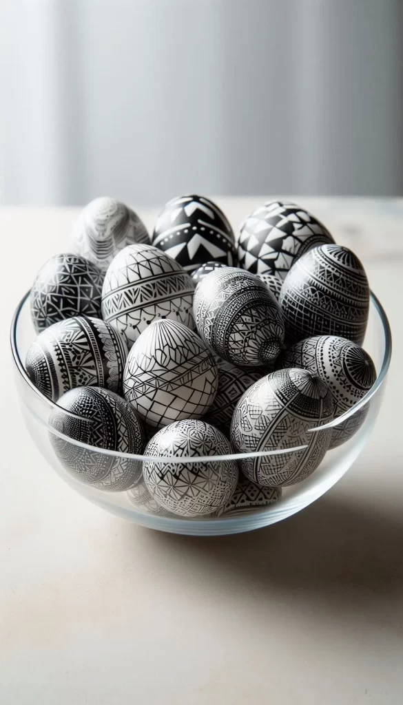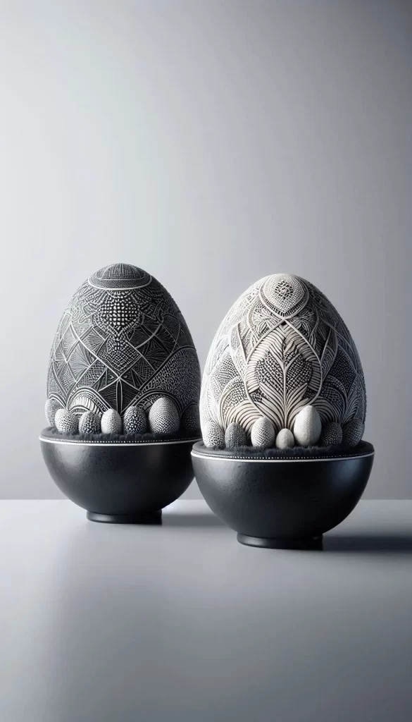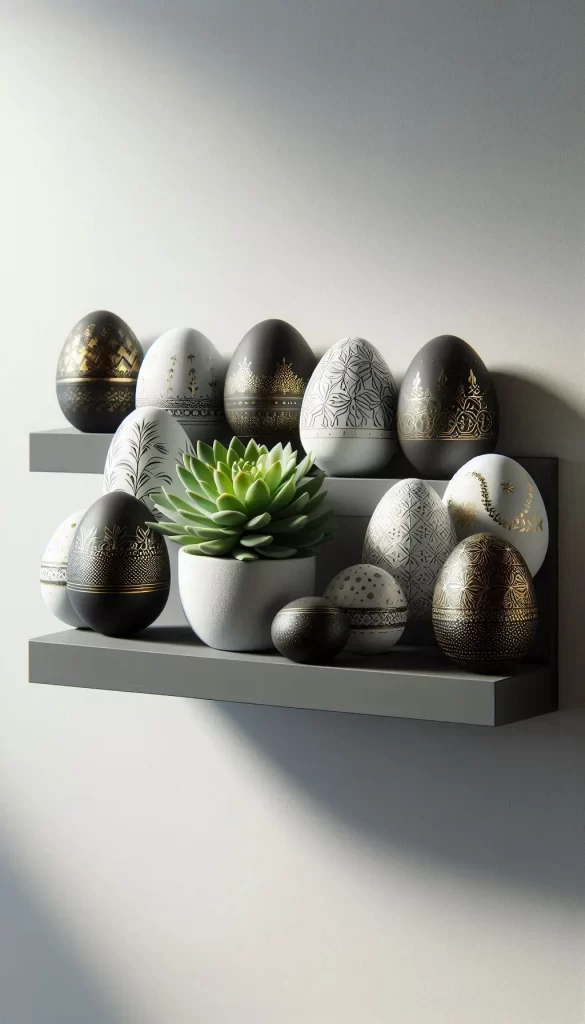 Create a sleek, modern look with monochrome Easter eggs in black, white, or metallic tones.