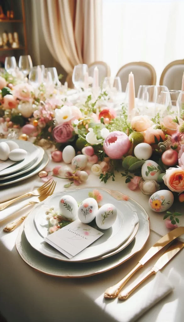 Description: Elevate your Easter brunch with a modern table setting featuring clean lines and neutral tones.