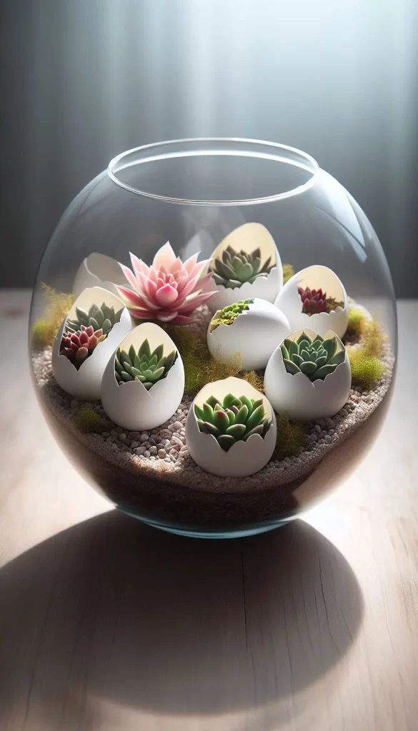 A modern take on terrariums using hollowed-out eggs as mini planters.