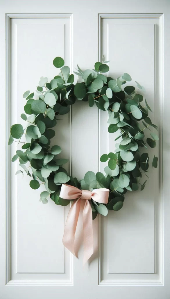 A simple yet elegant wreath made of eucalyptus, olive branches, or dried flowers.