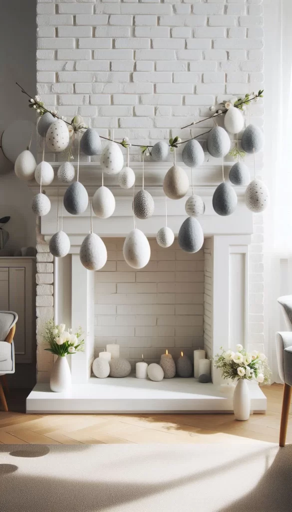 A sophisticated garland made of felt or paper eggs in a modern color palette.