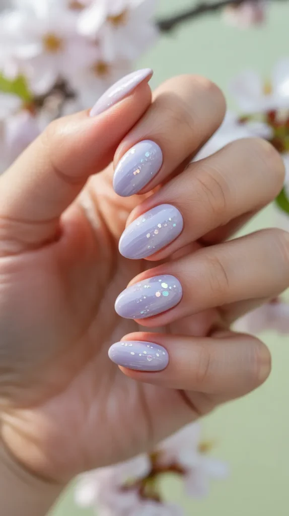Pastel glitter nails are soft yet sparkly. Choose lavender, mint, or baby blue with fine glitter mixed into the polish. This style is perfect for spring break and Easter season.