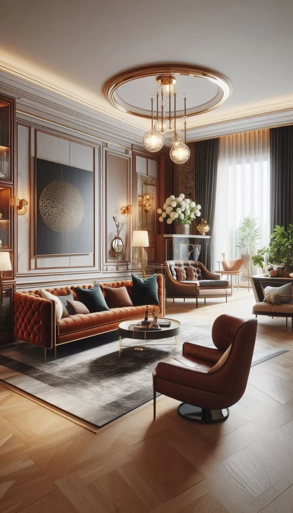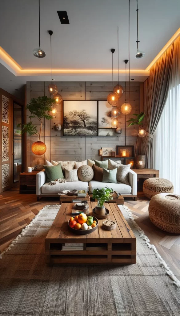 Statement lighting fixtures are an essential element in 2025 living room decor. From oversized pendant lights to sculptural floor lamps, these lighting pieces not only brighten the room but also serve as dramatic focal points.